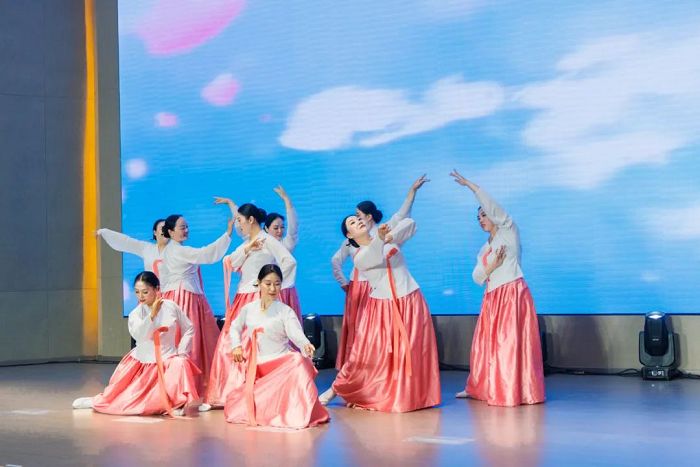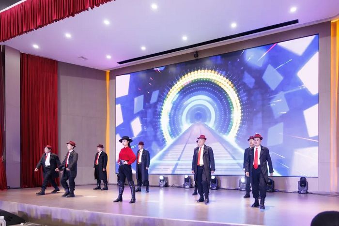 演出在激昂的铜管乐合奏《欢迎曲》中拉开帷幕,铿锵的旋律瞬间点燃全场热情。扇子舞《五星红旗》以翩跹舞姿绘就爱国画卷,女声小合唱《萨日朗花开红火火》唱响民族团结的赞歌,而戏曲表演《柳韵琴声颂邳州》则用传统艺术形式展现家乡建设的丰硕成果。朝鲜族舞蹈《金达莱盛开的地方》、军舞《祖国不会忘记》、舞蹈《溜溜的康定情》、交谊舞《我的祖国》、男模表演《花样年华》、女模走秀《蝶画》、民乐合奏《喜洋洋》、电吹管独奏《红歌联奏》等节目,以多元艺术形式传递了邳州老年大学银发志愿者们对祖国的深情与对劳动者的礼赞。